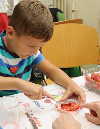 Impressions of the campus holiday for kids by the CRC 854. On July the 5th and 12th 2018, science-hungry young researchers discovered the world of immune cells. They had lots of fun competing in the immune cell quiz, making buttons, isolating DNA from strawberries and visiting a working research lab. PhD students and staff members of the SFB demonstrated the world of the immune system to the junior researchers.
